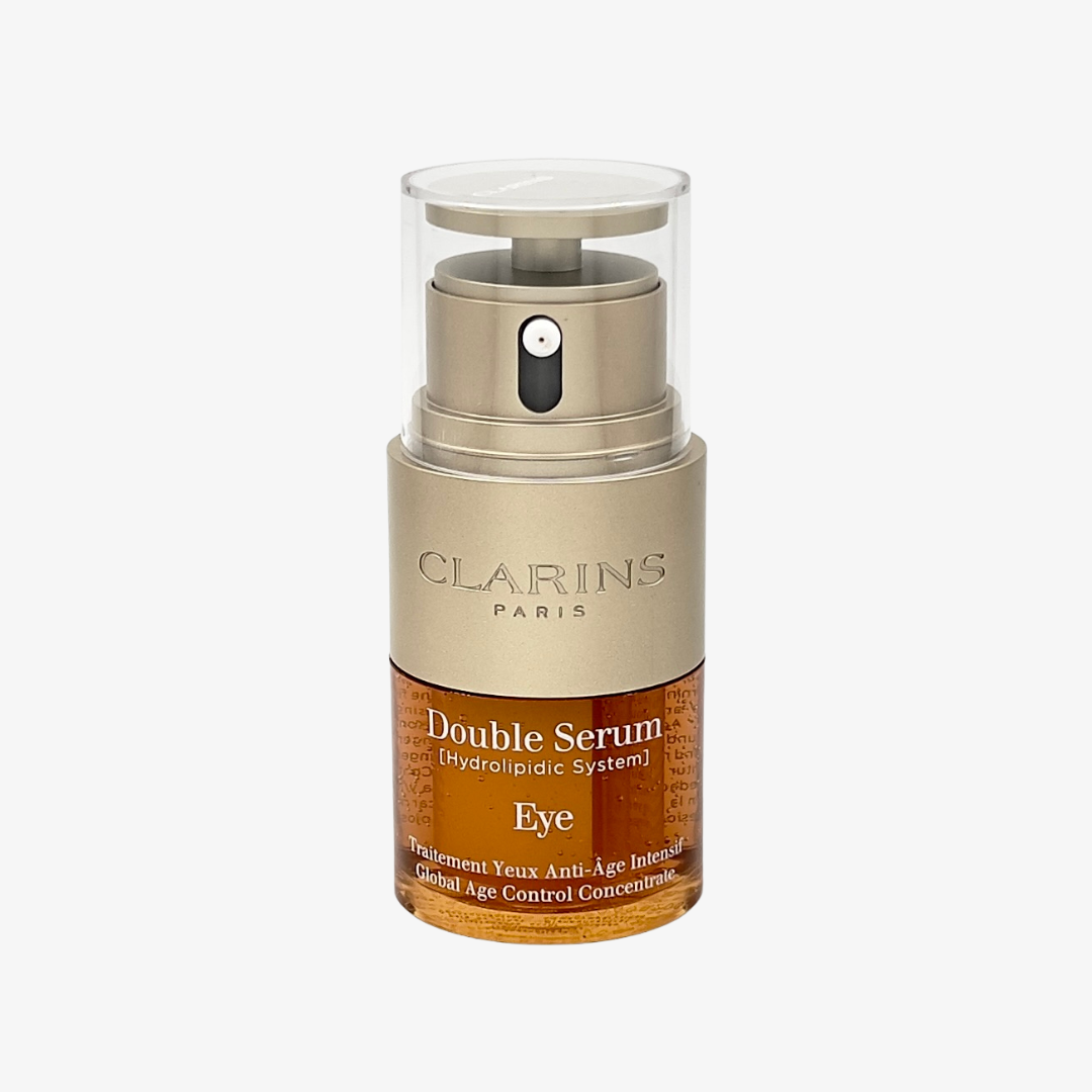 Inspired by our bestselling Double Serum, Clarins introduces Double Serum Eye - two power-packed serums in one concentrated formula that works from temple-to-temple to visibly smooth, firm, hydrate and revitalize the eye area with age-defying results.